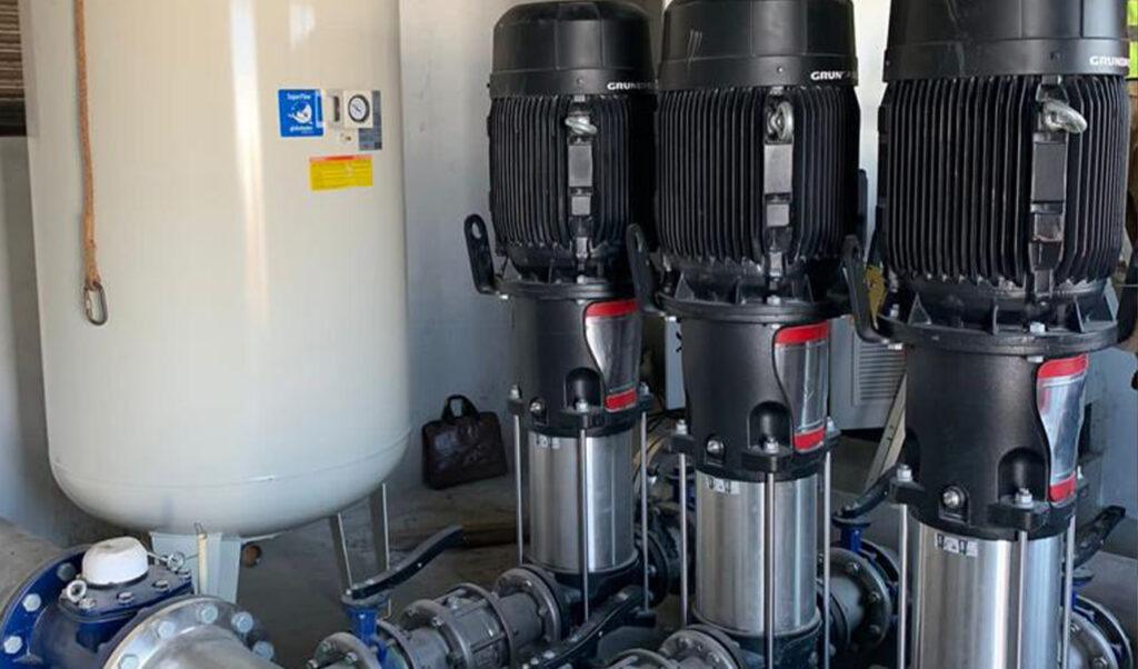 Em representação a Grundfos, a Blue Zone esteve, recentemente, na vila de Nhamatanda, na província de Sofala, onde fez o comissionamento de um sistema de bombas para uma grande empresa, permitindo o acesso à água para a população que sofria há três meses. Na ocasião, foi feito o comissionamento de duas bombas da Grundfos tipo SE.100.240.2.52S.N.51D, controladas por quadros Grundfos LC241, que são utilizadas para captação da água no rio, uma bomba Hydro MPC-S 3x NK 65-160/157 que é usada para transferência de água do decantador para depósito semi-enterrado, uma HYDRO MPC-E 3 CR 95-3-1 utilizada para transferência de água tratada até a Vila, dista aproximadamente 14 Km da captação, uma DDA17-7 e seus acessórios que são usados para doseamento de Sulfato de Alumínio, e uma DMX14-10 que é utilizada para o doseamento de hipoclorito de cálcio.